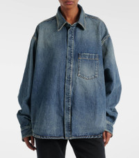 This denim shirt from Balenciaga has a classic collar and button placket down the front. The design contrasts the timeless design elements with the boxy silhouette and extended sleeves. Product Details - Material: 100% cotton - Care instructions: machine wash at 30 degrees - Made in Italy - Designer color name: Sun Bleached Blue - Item color: blue - Closure: buttoned front - Item number: P00999615 Size & Fit - True to size - Fits large to size - we recommend trying one size smaller - Designed for an extremely oversized fit - Unisex style - Dropped shoulders - Non-stretchy fabric - Falls below the hip - The model seen in the picture is 178cm-5'10" and wearing a size FR 34