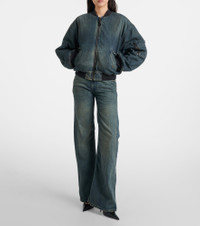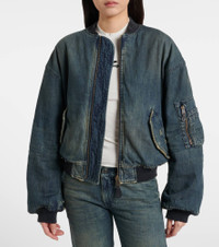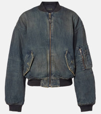 Add this bomber jacket from Balenciaga to your everyday wardrobe rotation. Crafted in Italy from distressed denim, this piece features ribbed trims, front pockets, and zipped front closure. Product Details - Material: 100% cotton - Care instructions: dry clean - Made in Italy - Designer color name: Navy/Green/Yellow - Item color: blue - Hardware color: antique gold - Trim: 100% cotton - Lining: 100% cotton - Filling: 60% silk, 40% polylactide - Closure: zipped front - Cuff: ribbed - Pockets: snap-buttoned pockets, internal pockets - Hem: ribbed - Item number: P01092745 Size & Fit - True to size - Dropped shoulders - Designed for a loose fit - Elasticated hem - Non-stretchy fabric - Falls to the hip - The model seen in the picture is 178cm-5'10" and wearing a size XS