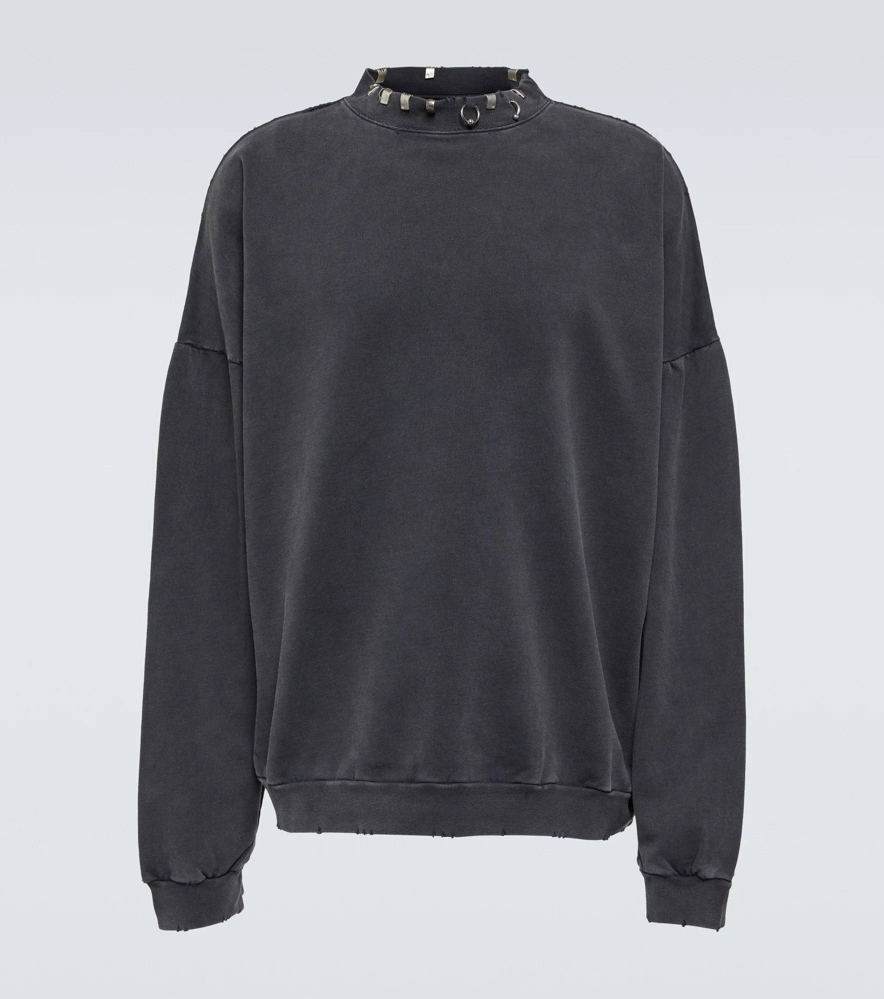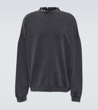 Pierced Embellished Distressed Cotton-Jersey Sweatshirt