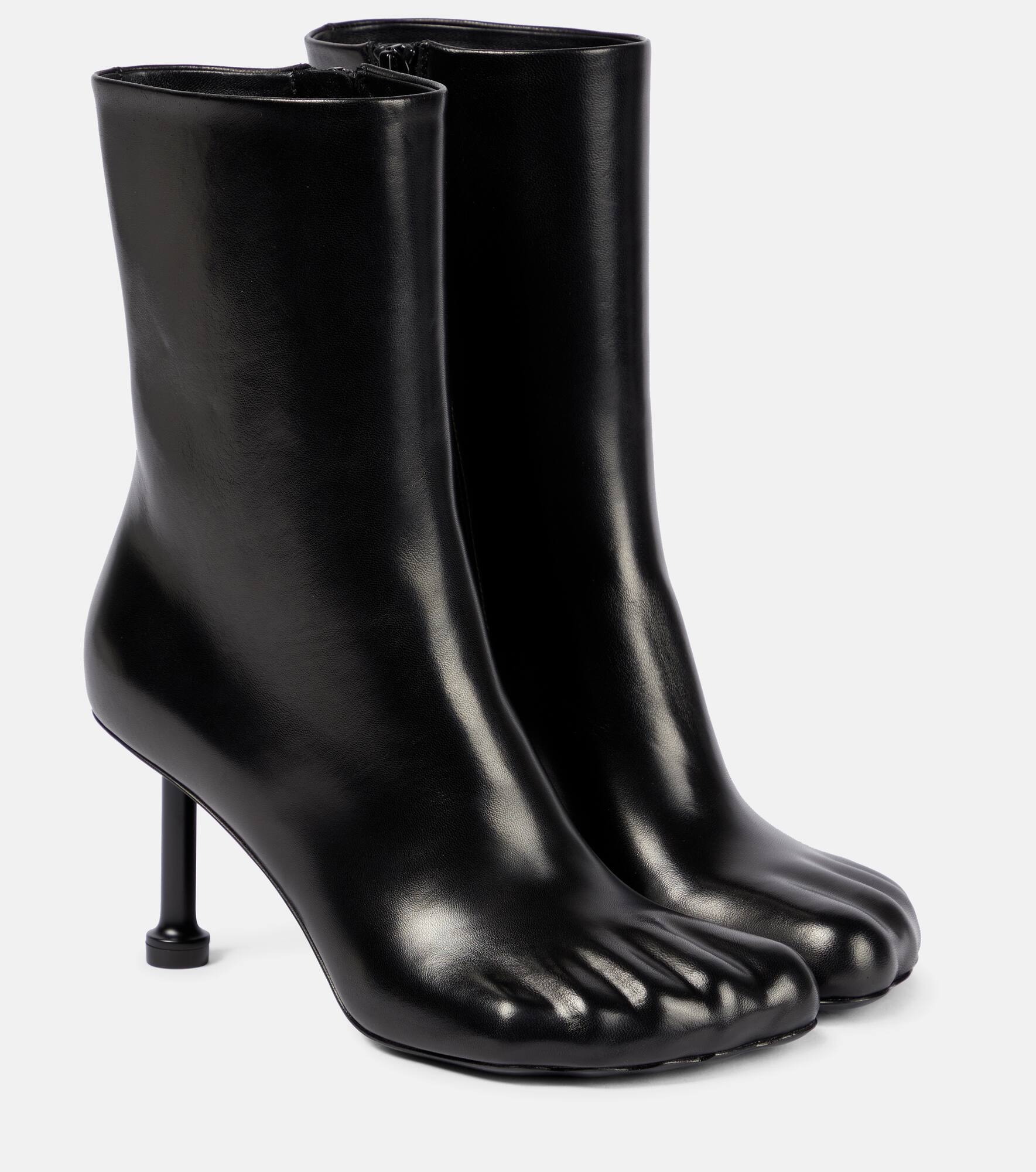 The Fetish boots from Balenciaga are characteristic of Demna Gvasalia's provocative design philosophy. This black leather pair has 80mm heels and ridged indentations that follow the natural lines of the foot. Product Details - Lining: leather - Closure: zipped side - Toe shape: round toe - Upper: calf leather - Sole: leather insole and sole - Designer color name: Black - Comes with dust bags - Comes with a box - Made in Italy - Item number: P00635962 Size & Fit - Fits slightly large to size - we recommend trying a half size smaller - European sizes - 8cm-3" heel (size EU 38)