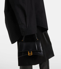 The design of Balenciaga’s black Hourglass Small crossbody bag celebrates the house’s archives while remaining undeniably modern. Inspired by Cristóbal Balenciaga’s iconic tailoring, it has a unique concave silhouette made from smooth calfskin, and it’s trimmed with a metallic B monogram charm. You’ll love its versatility: it can be carried crossbody, over the shoulder or in hand. Product Details - Top handle, Detachable, adjustable shoulder strap - Color of strap: black - Color of fastening: antique gold - Designer color name: Black - Internal details: internal zipped pocket, leather lining - Comes with dust bag - Made in Italy - Closure: magnetic fastening - Material: calf leather - Item number: P00444350 Size & Fit - Height 14,5cm-5.5" - Min. width 19cm-7.5" - Max. width 22,5cm-9" - Depth 10cm-4" - Min. length shoulder strap 45cm-17.5" - Max. length shoulder strap 118cm-46.5"