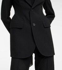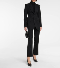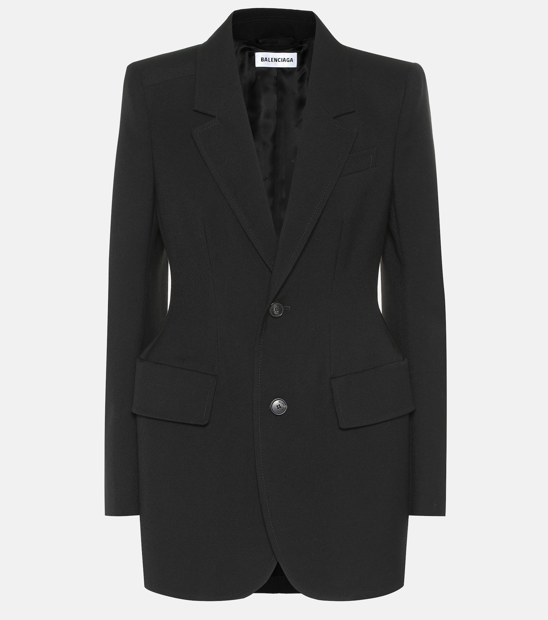 Cristóbal Balenciaga's sharply sculpted Hourglass blazer will always be a fashion classic, and this timeless black iteration pays homage to the house icon. Impeccably constructed in Italy from virgin wool, the single-breasted design works a defined figure thanks to the nipped waist, padded hips and shoulders. Style yours with a midi skirt and the BB pumps to move from desk to dinner. Product Details - Made in Italy - Care instructions: dry clean - Pocket lining: 100% cotton - Material: 100% virgin wool - Pockets: breast pocket, flap pockets - Designer color name: Black - Closure: button fastening - Lining: fully lined, 100% cupro - Buttoned cuffs, Shoulder pads - Item number: P00402745 Size & Fit - Fits large to size - we recommend trying one size smaller - Oversized shoulders - Shoulder pad inserts - Cinched waist - Mid-weight material - Falls below the hip - The model seen in the picture is 178cm-5'10" and wearing a size FR 34