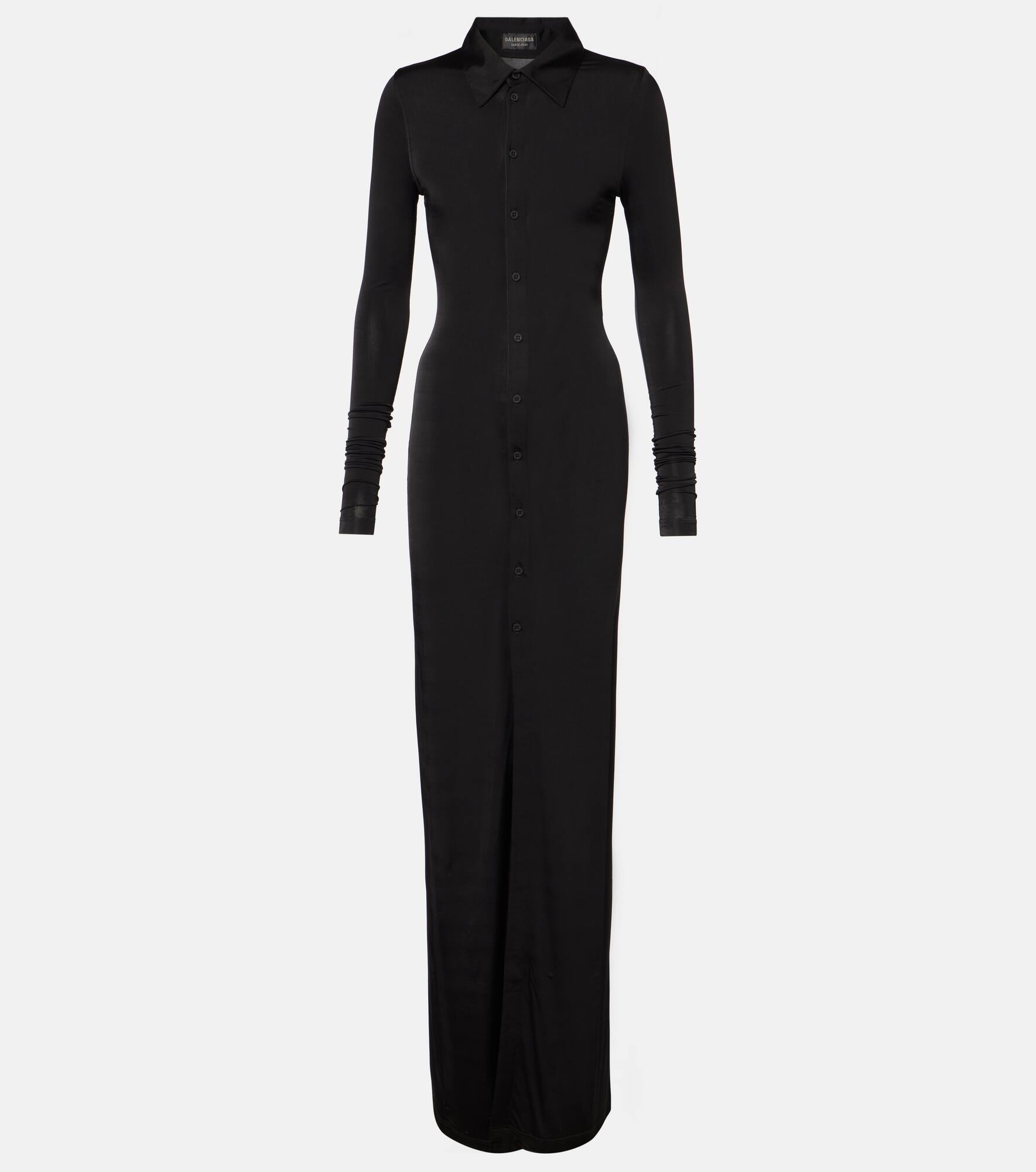 Stretch-jersey maxi shirt dress Black