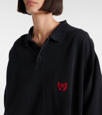 Add to your everyday rotation cardinal designs like this polo shirt from Balenciaga. Crafted from breathable cotton pique, this long-sleeved style features an asymmetric hem and is finished with the Laurel Classic artwork embroidery at the chest. Product Details - Material: 100% cotton - Care instructions: machine wash at 30 degrees - Made in Portugal - Designer color name: Faded Washed Black - Item color: black - Embroidery: 100% polyester - Closure: partially button-down - Contains non-textile parts of animal origin - Item number: P01033705 Size & Fit - True to size - Unisex style - Dropped shoulders - Designed for a loose fit - Slightly stretchy fabric - Falls below the hip - The model seen in the picture is 178cm-5'10" and wearing a size XS