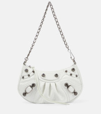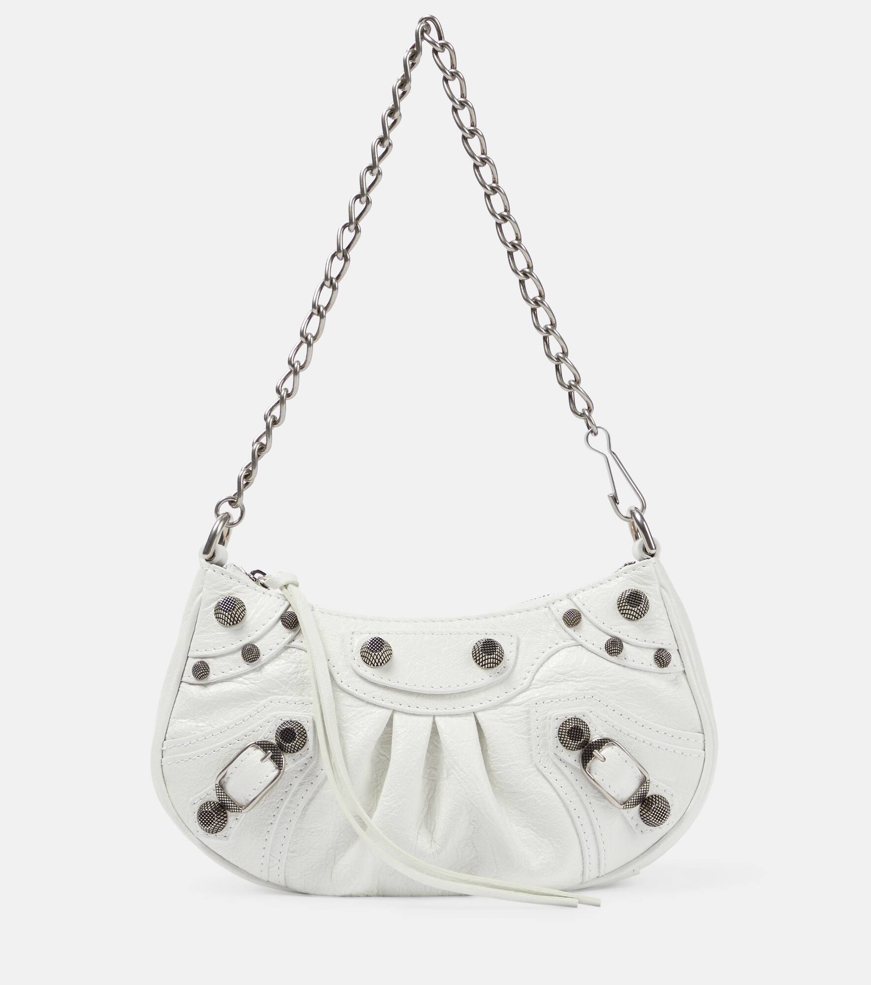 Balenciaga’s Le Cagole Mini design is fashion's new "it" bag. Made from crinkled white leather, it’s studded with textured hardware and features a chain strap, as well as a leather crossbody one. Product Details - Closure: zipped top - Detachable, adjustable shoulder strap - Designer color name: Optic White - Internal details: fabric lining, Card slots - Made in Italy - Comes with dust bag - Material: cow leather - Item number: P00743008 Size & Fit - Height 11cm-4.5" - Max. width 21cm-8.5" - Depth 4,5cm-2" - Chain length 42cm-16.5" - Min. length shoulder strap 98cm-38.5" - Max. length shoulder strap 116cm-45.5"