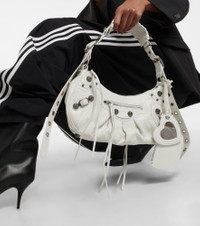 Balenciaga spins the classic shoulder bag into an edgy rendition with the La Cagole shoulder bag. Crafted from leather, this piece is lined with cotton canvas and features a removable zip pouch. Product Details - Top handle, Adjustable shoulder strap - Closure: zipped top - Material: leather - Internal details: internal zipped pocket, fabric lining - Designer color name: Optic White - Made in Italy - Zipped front pocket, Zipped back pocket, Detachable zipped pouch - Color of fastening: silver - Item number: P00766725 Size & Fit - Height 17cm-6.5" - Width 34cm-13.5" - Depth 10cm-4" - Min. length shoulder strap 50cm-19.5" - Max. length shoulder strap 110cm-43.5"