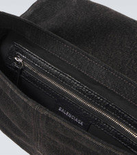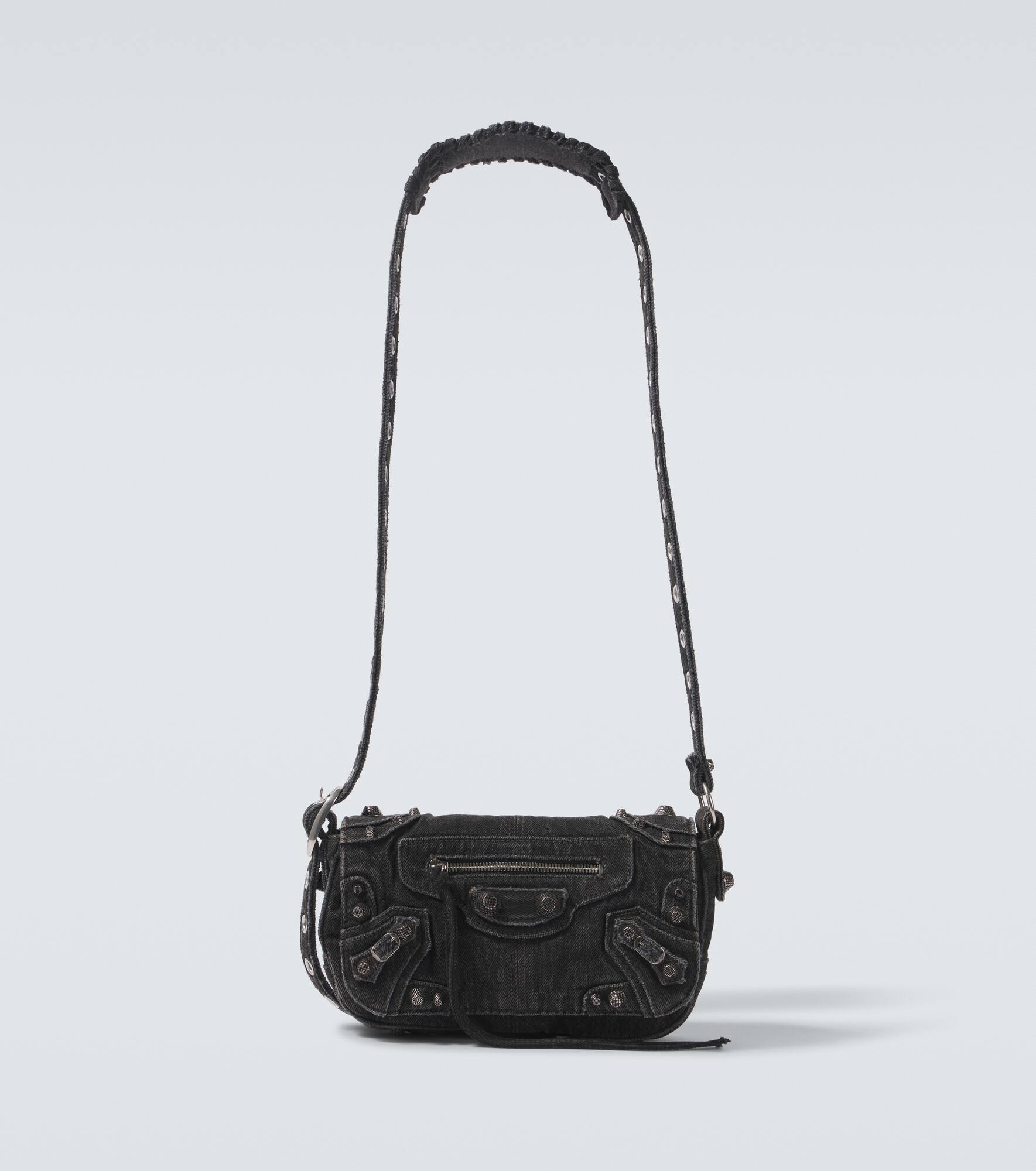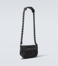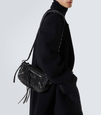 Le Cagole XS Studded Washed-Denim Messenger Bag Black