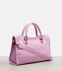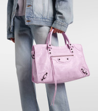 Balenciaga has evolved from the heartbeat of Paris to become one of the world’s most influential brands. Made in Italy from pink leather, the Le City Medium tote bag features black hardware and a detachable shoulder strap. Product Details - Material: lamb leather - Lining: fabric - Made in Italy - Color: pink - Designer color name: Bubbly Pink - Zipped front pocket - Top handles, Detachable, adjustable shoulder strap - Internal details: single compartment, internal zipped pocket - Includes: dust bag - Closure: zipped top - Hardware color: black - Item number: P01121146 Size & Fit - Height 25cm-10" - Max. width 38cm-15" - Max. depth 14cm-5.5" - Length of handles 36cm-14" - Length shoulder strap 85cm-33.5"
