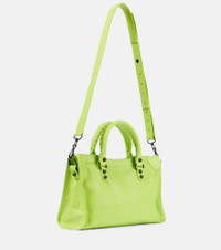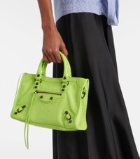 Balenciaga revisits an iconic silhouette with the Le City Small tote bag. Crafted from green leather, this spacious design features signature studded detailing, a detachable pouch, and a matching mirror charm – a nod to the house’s archival codes. Product Details - Material: leather - Lining: fabric - Made in Italy - Designer color name: Granny Green - Item color: green - Closure: zipped top - Top handles, Detachable shoulder strap - Hardware color: anthracite - Item number: P01040159 Size & Fit - Height 20cm-8" - Width 30cm-12" - Max. depth 10cm-4" - Length of handles 30cm-12" - Adjustable shoulder strap - Max. length shoulder strap 101cm-40"