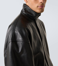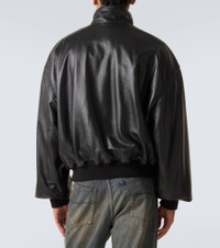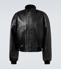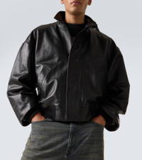 Innovation is at the heart of Balenciaga, which proudly presents its modern interpretation of fashion in every piece. Made from black leather, this blouson is a fully lined piece with ribbed-knit trims, a concealed zipper and snap button fastenings, and a high neckline. Product Details - Material: 100% lamb leather - Care instructions: specialist clean - Made in Turkey - Designer color name: Black - Item color: black - Trim: 89% cotton, 9% polyamide, 2% elastane - Lining: 100% cotton - Pocket lining: 100% cotton - Contains non-textile parts of animal origin - Closure: zipper, snap-button fastenings - Pockets: side slit pockets, internal pocket - Cuff: ribbed - Hem: ribbed - Item number: P01098425 Size & Fit - True to size - Dropped shoulders - Elasticated hem - Oversized - Non-stretchy fabric - Slightly cropped - Height of model is 188cm-74" and wears a size L