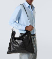 This Balenciaga shoulder bag is crafted in Italy from lamb leather, and the supple silhouette makes it ideal to carry everyday essentials. The accessory features an adjustable top handle and a zipped top. Product Details - Material: lamb leather - Lining: fabric - Made in Italy - Designer color name: Black/L White - Item color: black - Adjustable shoulder strap - Internal details: internal zipped pocket, single compartment - Closure: zipped top - Includes: dust bag - Item number: P01117647 Size & Fit - Height 47cm-18.5" - Width 48cm-19" - Depth 15cm-6" - Adjustable shoulder strap - Max. length shoulder strap 117cm-46"