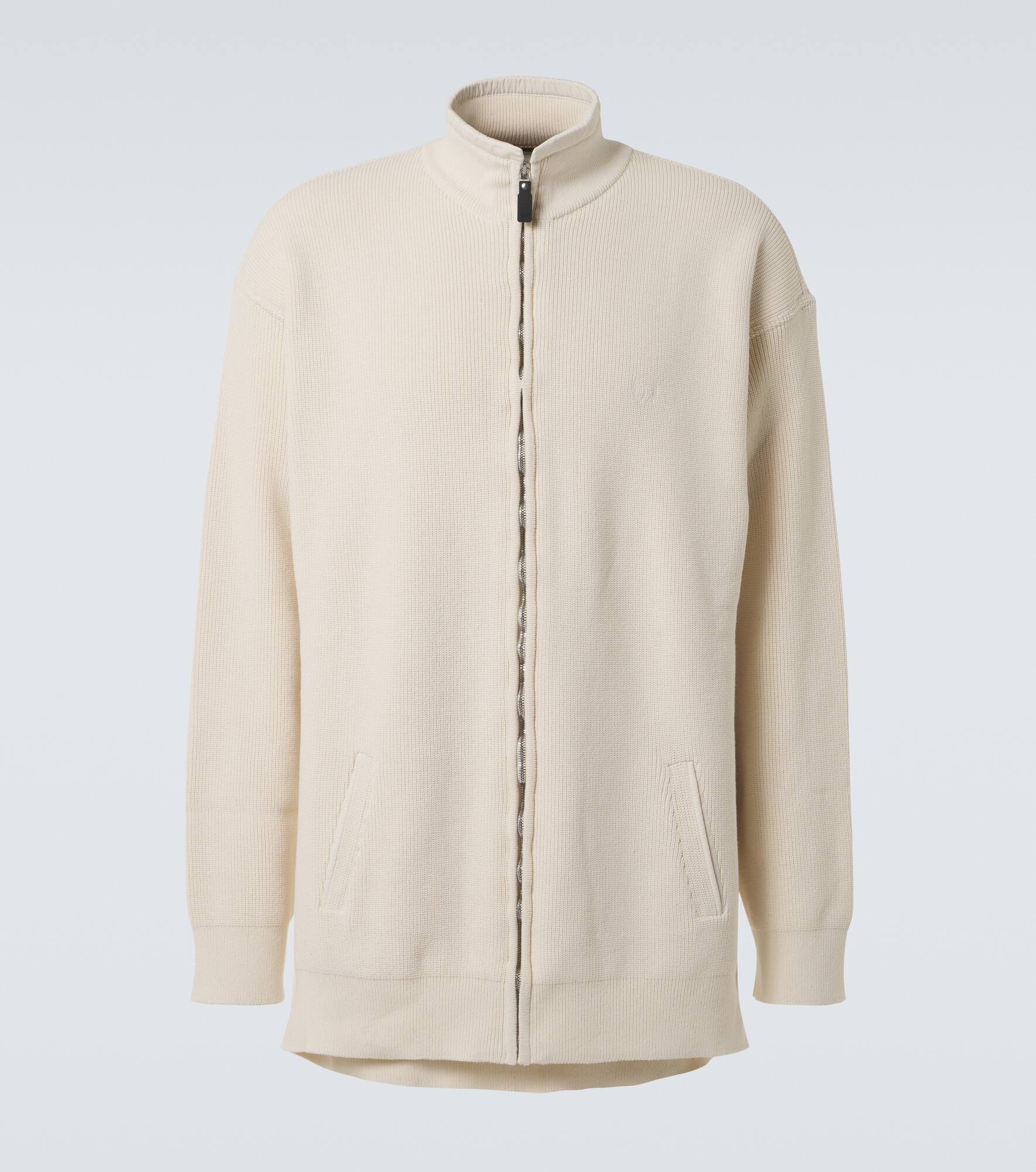 Logo cotton-blend zip-up cardigan