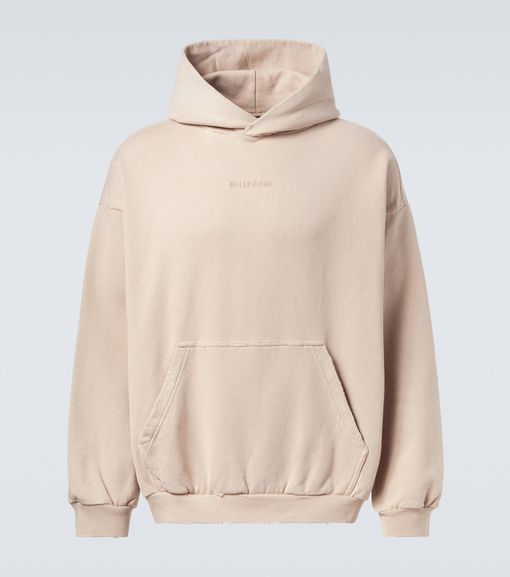 Innovation is at the heart of Balenciaga, which proudly presents its modern interpretation of fashion in every piece. Shaped for a relaxed fit with dropped shoulders, this cotton fleece hoodie is finished with logo detailing at the front and back. Product Details - Material: 100% cotton - Care instructions: machine wash at 30 degrees - Made in Portugal - Designer color name: Beige/Beige - Item color: beige - Embroidery: 100% polyester - Hood - Pockets: kangaroo pocket - Item number: P01057351 Size & Fit - True to size - Unisex style - Dropped shoulders - Designed for a loose fit - Non-stretchy fabric - Falls to the hip - Height of model is 189cm-74.5" and wears a size L