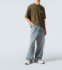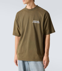 Innovation is at the heart of Balenciaga, which proudly presents its modern interpretation of fashion in every piece. This T-shirt is crafted from pure cotton jersey into a relaxed silhouette with logo detailing at the chest. Product Details - Material: 100% cotton - Care instructions: machine wash at 30 degrees - Made in Portugal - Designer color name: Khaki - Item color: green - Collar: crewneck - Trim: 99% cotton, 1% elastane - Item number: P01130578 Size & Fit - True to size - Dropped shoulders - Designed for a loose fit - Slightly stretchy fabric - Falls below the hip - Height of model is 189cm-74.5" and wears a size L