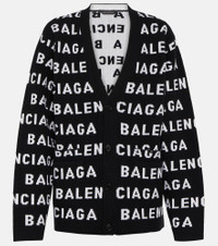 This cardigan from Balenciaga is defined by an all-over logo jacquard motif for enviable recognition. It's knitted from a wool blend to a relaxed fit with a V-neckline and patch pockets at the front. Product Details - Material: 98% wool, 2% polyamide - Care instructions: dry clean - Made in Italy - Designer color name: Black/White - Trim: 98% wool, 2% polyamide - Closure: buttoned front - Item number: P00858941 Size & Fit - True to size - Dropped shoulders - Oversized - Mid-weight material - Falls below the hip - The model seen in the picture is 178cm-5'10" and wearing a size 1