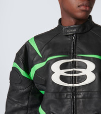 Racer Oversized Distressed Panelled Leather Jacket Black