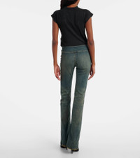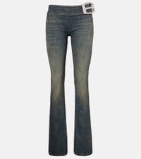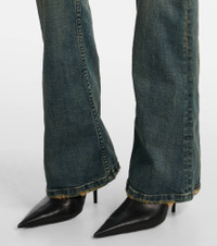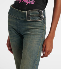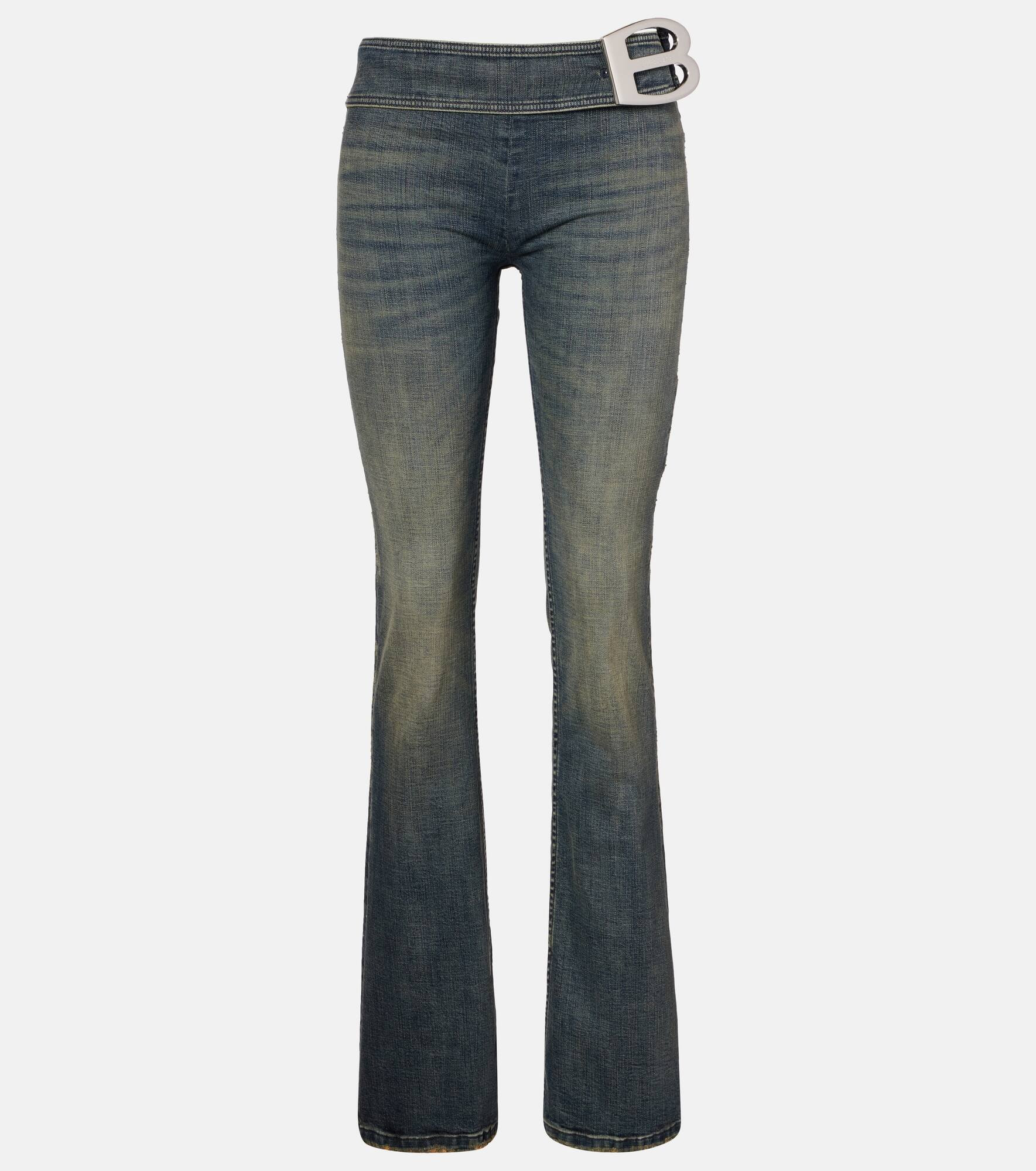 Innovation is at the heart of Balenciaga, which proudly presents its modern interpretation of fashion in every piece. These bootcut jeans are tailored to a low-rise silhouette and feature a silver-toned B buckle on the zipped side. Product Details - Material: 98% cotton, 2% elastane - Care instructions: machine wash at 30 degrees - Made in Italy - Designer color name: Navy/Green/Yellow - Item color: blue - Hardware color: silver - Attached belt - Closure: zipped side - Item number: P01092735 Size & Fit - Fits small to size - we recommend trying one size larger - Slightly stretchy fabric - Bootcut - Low-rise - The model seen in the picture is 178cm-5'10" and wearing a size 27