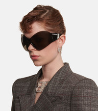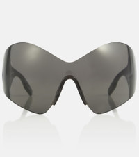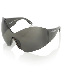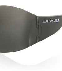 With their rimless profile, the oversized Mask Butterfly sunglasses from Balenciaga are reminiscent of technical sports gear. They're emblazoned with logo lettering at the arms. Please note that the color of the protective case may vary. Product Details - Frame color: black - Frame material: acetate - Lens color: black - comes in a logo-embossed case - Lens filter category 3 - Made in Italy - Item number: P00625241 Size & Fit - Lens width: 99mm-3.9" - Bridge size: 19mm-0.75" - Earpiece length: 110mm-4.35"