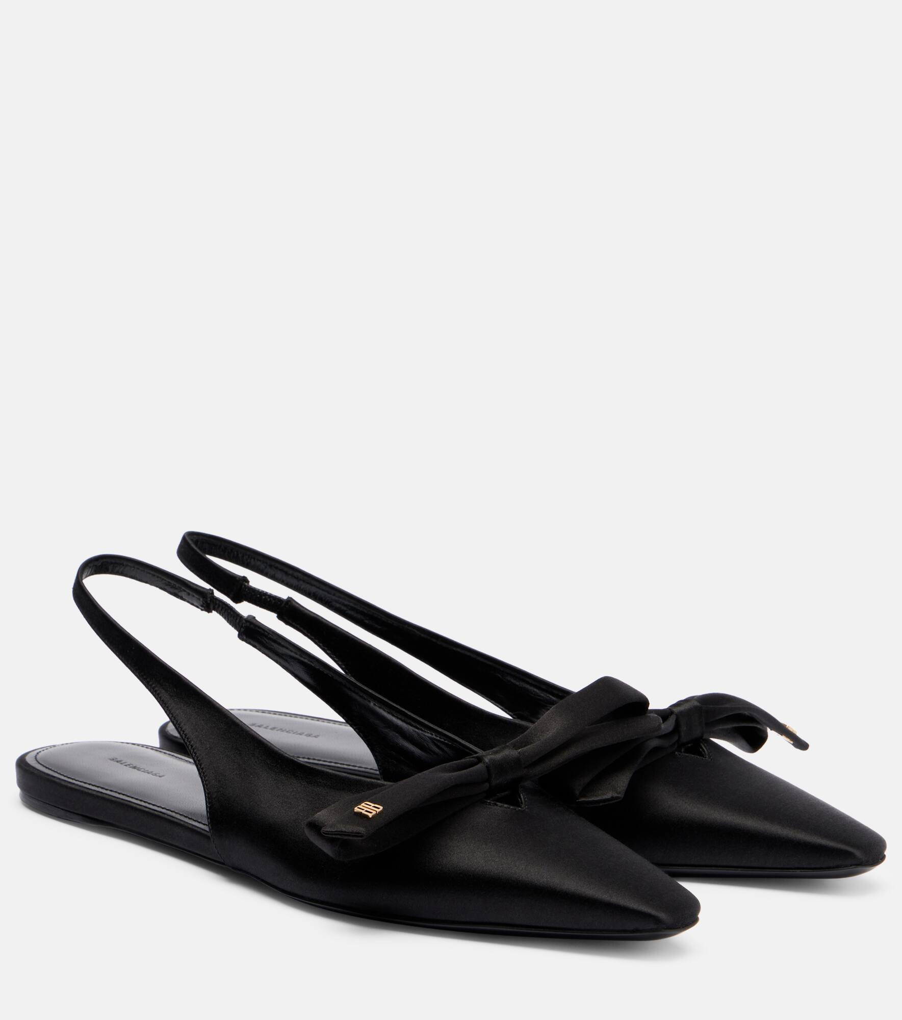 Known for its bold, boundary-pushing aesthetic, Balenciaga continues to redefine modern luxury. These slingback flats are crafted in Italy from satin and feature the Nano BB logo, a sharply pointed toe, and a striking silhouette. Product Details - Upper: fabric - Lining: leather - Sole: leather insole and sole - Toe shape: pointed toe - Made in Italy - Includes: shoe box, dust bags - Designer color name: Black - Item color: black - Item number: P01063144 Size & Fit - True to size - European sizes - 1,5cm-0.5" heel (size EU 38)