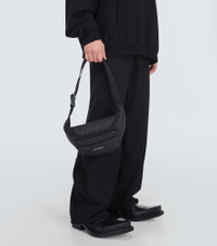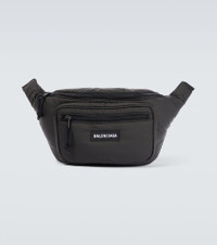 Embrace a utilitarian style this season with Balenciaga's sporty black belt bag. Crafted in Italy from nylon with an adjustable belt strap, it features a spacious central compartment and front zipped pockets. Product Details - Material: fabric - Lining: fabric - Made in Italy - Designer color name: Black - Includes: dust bag - Closure: zipped top - Adjustable shoulder strap - Item number: P00827615 Size & Fit - Height 18cm-7" - Width 28cm-11" - Max. depth 9cm-3.5" - Min. strap length 28cm-11" - Max. strap length 98cm-38.5"