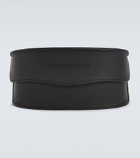 Offering 100% UV protection, these Balenciaga sunglasses are a futuristic approach to eyewear. Made from black acetate, this oval style is shaped with elongated tinted lenses for unhindered view, and a molded nose bridge. Product Details - Frame color: black - Frame material: acetate - Lens color: black - Lens type: tinted lenses - comes with cleaning cloth - comes in a logo-embossed case - Lens filter category 3 - Made in Italy - 100% UV protection - Item number: P00761689 Size & Fit - Lens width: 80mm-3.15" - Bridge size: 19mm-0.75" - Earpiece length: 110mm-4.35"