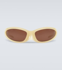 Offering 100% UV protection, these Balenciaga sunglasses are a futuristic approach to eyewear. Made from brown acetate, this oval style is shaped with elongated mirrored lenses for unhindered view, and a molded nose bridge. Product Details - Frame color: light beige - Frame material: acetate - Lens color: brown - Lens type: mirrored lenses - comes with cleaning cloth - comes in a logo-embossed case - Lens filter category 3 - Made in Italy - 100% UV protection - Item number: P00761690 Size & Fit - Lens width: 80mm-3.15" - Bridge size: 19mm-0.75" - Earpiece length: 110mm-4.35"