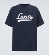 This Balenciaga T-shirt says it all with the center-front print. Made from cotton jersey, the piece is designed with a relaxed silhouette for effortless styling. Product Details - Material: 100% cotton - Care instructions: machine wash at 30 degrees - Made in Portugal - Designer color name: Black - Item color: black - Trim: 99% cotton, 1% elastane - Details: 100% cotton - Embroidery: 100% polyester - Collar: crewneck - Item number: P01098428 Size & Fit - True to size - Dropped shoulders - Oversized - Slightly stretchy fabric - Falls below the hip - Height of model is 190cm-75" and wears a size L