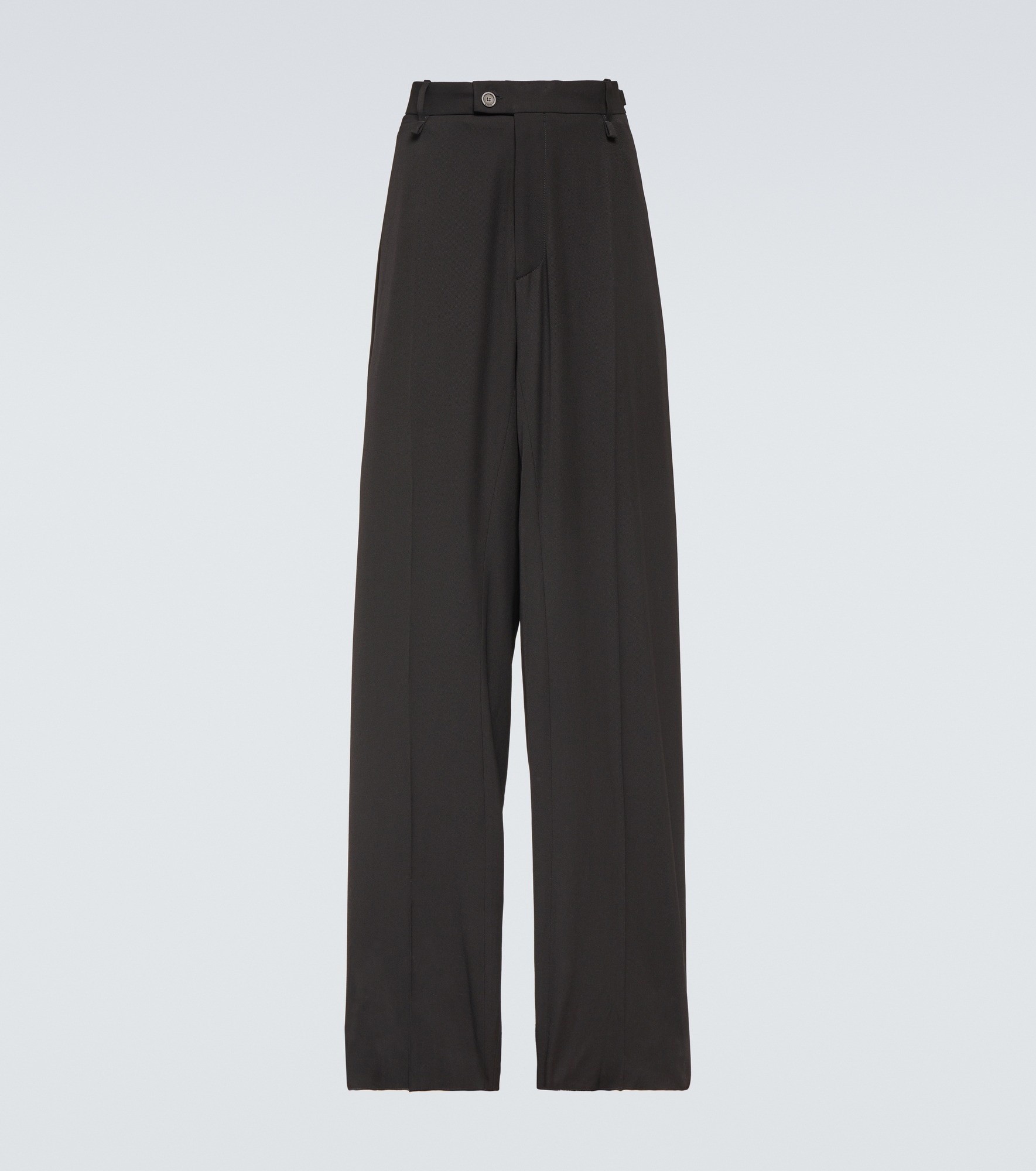 Product Details - Material: 73% wool, 27% viscose - Hem: unfinished (ready for alteration) - Belt loops - Adjustable tabs at the waist - Partially lined - Pockets: side slit pockets, back pockets - Care instructions: dry clean - Made in Italy - Designer color name: Black - Lining: 100% cupro - Pocket lining: 100% cotton - Contains non-textile parts of animal origin - Fit: straight - Low-rise - Item number: P00859161 Size & Fit - Fits large to size - we recommend trying one size smaller - Adjustable at the waist - Non-stretchy fabric - Wide-leg - Low inseam - Unhemmed for tailoring - The model in the picture is 185cm-6'1" and wearing a size S