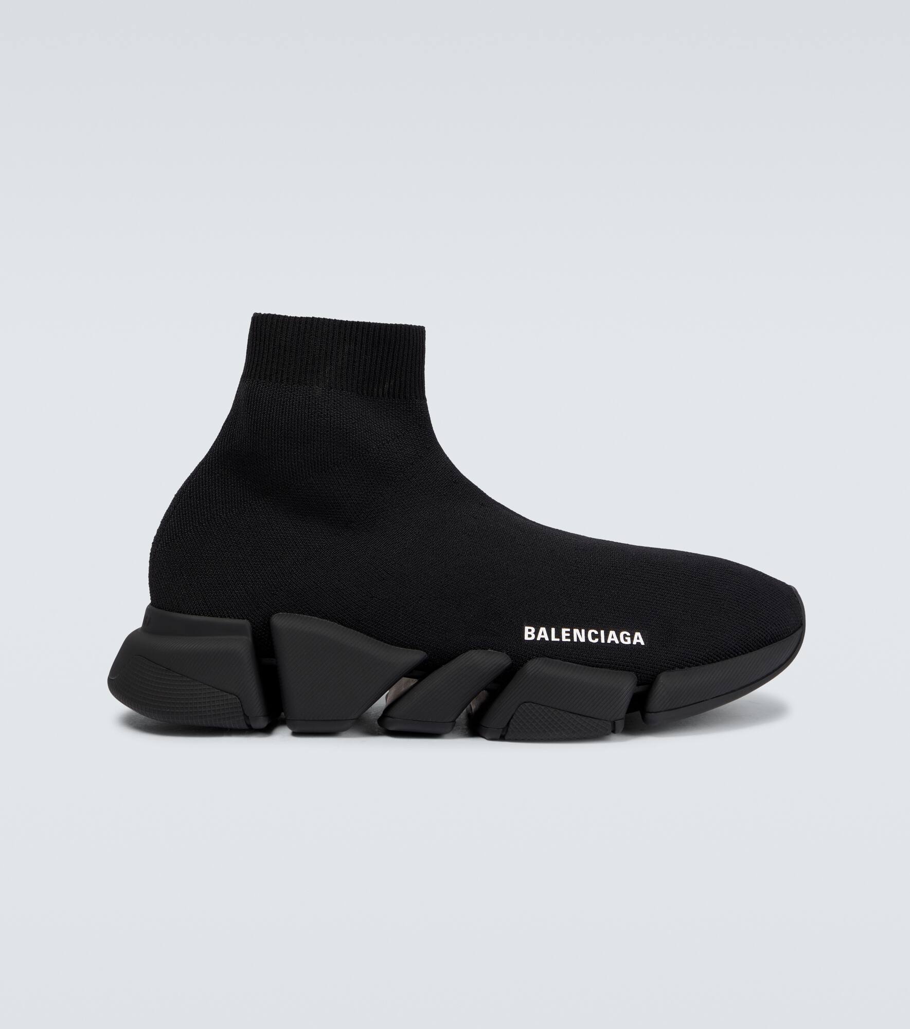 Balenciaga's instantly recognizable Speed sneakers receive an update featuring thick, fragmented and ultra-articulated rubber soles, and breathable fabric uppers in black. Product Details - Upper: fabric - Toe shape: round toe - Sole: fabric insole, rubber sole - Comes with a box - Lining: fabric - Designer color name: Black - Made in Italy - Comes with dust bag - Item number: P00721772 Size & Fit - True to size - Half sizes please take the next size down - European sizes