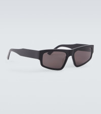 Finish your outfit with these slick sunglasses from Balenciaga. The stylish pair features a rectangular silhouette with a futuristic edge, the brand's logo lettering on temples, and a lasered logo on the right lens. Product Details - Frame material: acetate - Frame color: black - Lens filter category 3 - Lens color: black - Made in Italy - Includes: hard case, cleaning cloth - The color of the case may vary - Designer color name: Black-Black-Grey - Item number: P00870078 Size & Fit - Lens width: 56mm-2.2" - Bridge size: 18mm-0.7" - Earpiece length: 145mm-5.7"