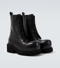 The chunky Stromper boots from Balenciaga are crafted from supple leather. This bold style features an oversized vamp, rounded toe, thick rubber sole, and lace-up closure. Product Details - Upper: calf leather - Lining: calf leather - Sole: leather insole, rubber sole - Toe shape: round toe - Made in Italy - Includes: shoe box, dust bag - Designer color name: Black - Item color: black - Item number: P01105465 Size & Fit - True to size - Half sizes please take the next size down - European sizes