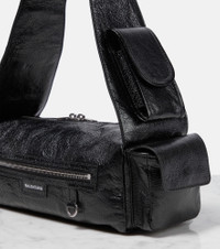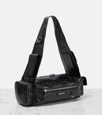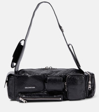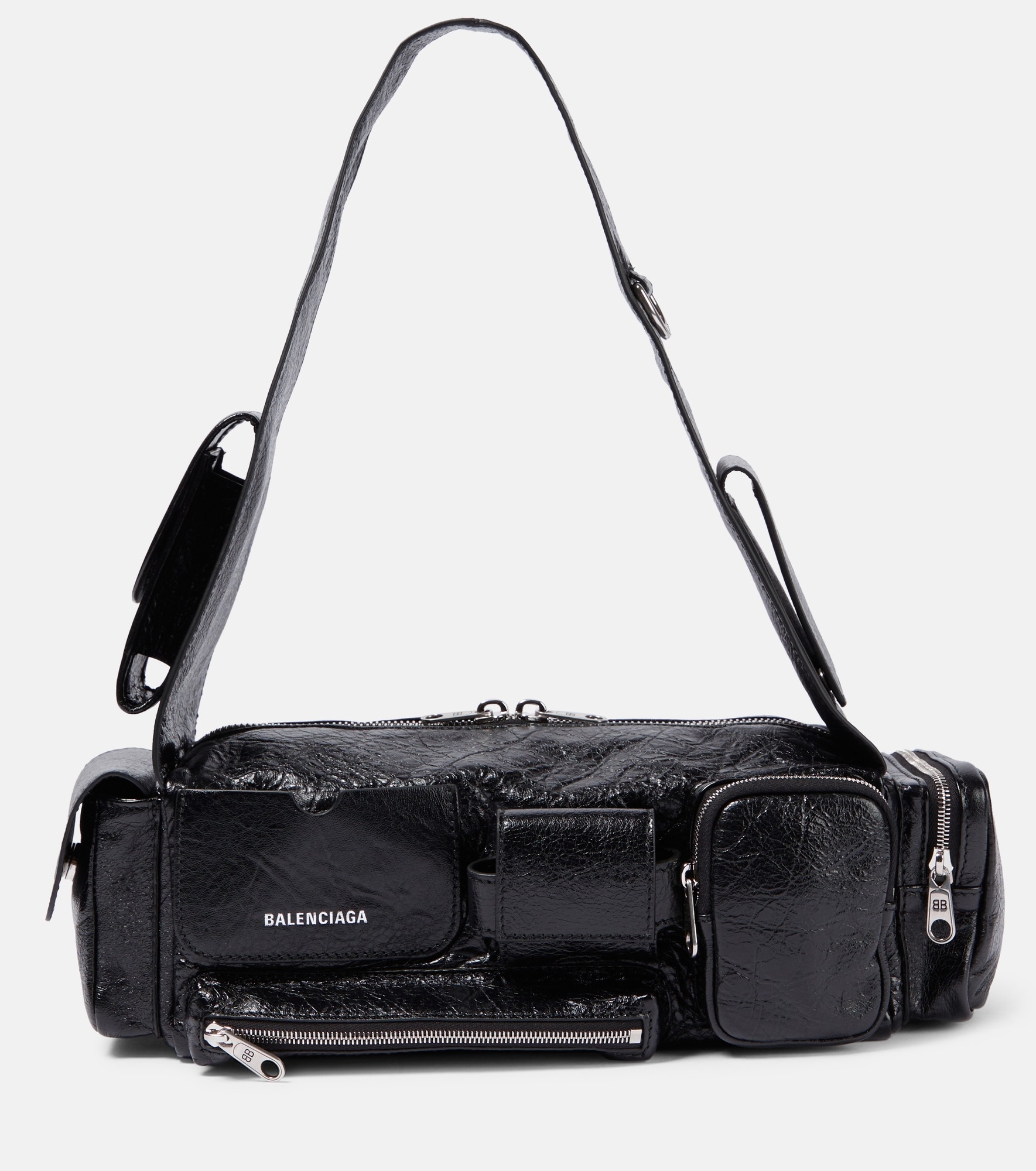 The Superbusy bag from Balenciaga exudes practical appeal with exterior pockets of varying sizes. Crafted in Italy from black textured leather, this XS model features a canvas-lined interior and antique silver-tone hardware. Product Details - Material: lamb leather - Lining: fabric - Made in Italy - Designer color name: Black - Closure: zipped top - Leather shoulder strap - Zipped back pocket - Side pockets - Front pockets - Comes with dust bag - Item number: P00856983 Size & Fit - Height 9cm-3.5" - Width 32cm-12.5" - Depth 11cm-4.5" - Length of handle 65cm-25.5"