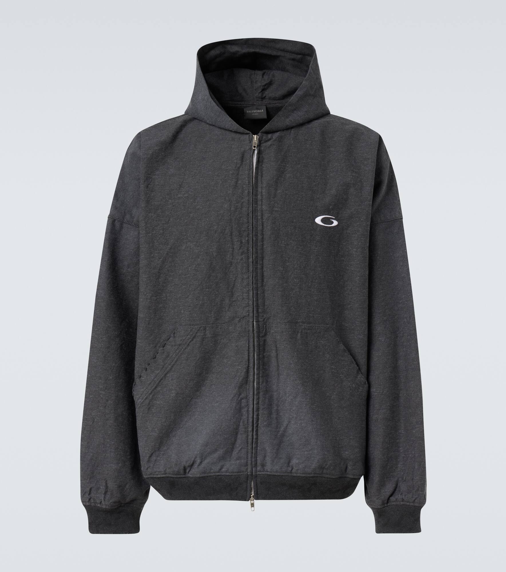 Embrace the avant garde with Balenciaga's signature radical innovation. This hoodie is made from cotton denim updating the classic silhouette with a trompe l-œil effect. Product Details - Material: 100% cotton - Care instructions: machine wash at 30 degrees - Made in Japan - Designer color name: Anthracite - Item color: gray - Trim: 100% cotton - Lining: 100% cotton - Embroidery: 100% polyester - Closure: two-way zipped front - Hood - Cuff: ribbed - Pockets: kangaroo pocket - Hem: ribbed - Item number: P01057344 Size & Fit - True to size - Unisex style - Dropped shoulders - Elasticated hem - Oversized - Non-stretchy fabric - Falls below the hip - Height of model is 189cm-74.5" and wears a size L