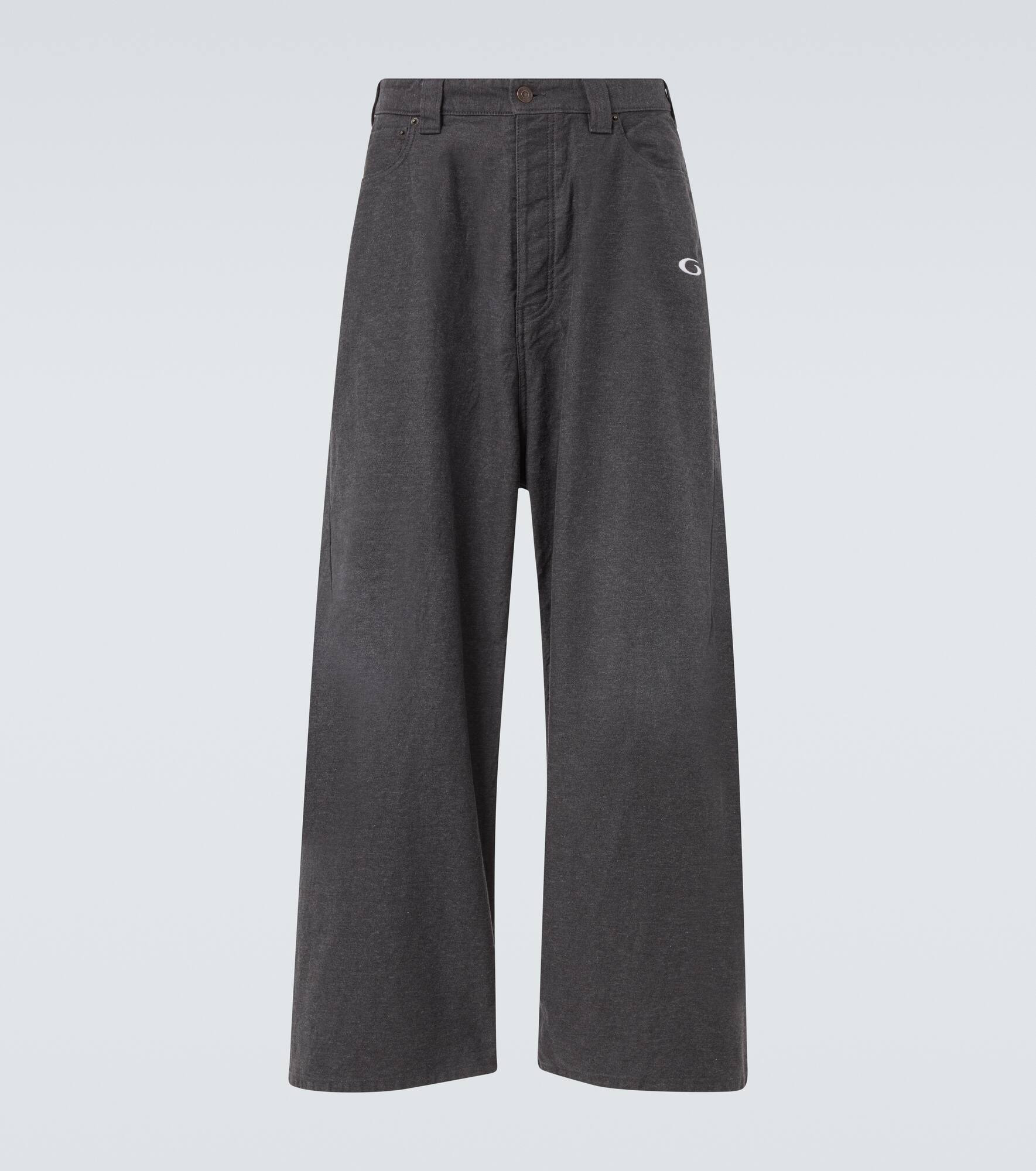 Crafted from denim to a mid-rise, relaxed silhouette, the Trompe L’Oeil sweatpants by Balenciaga bring an edgy twist to casual wear. This pair is finished with a Loop Sports Icon embroidered on the leg. Product Details - Material: 100% cotton - Care instructions: machine wash at 30 degrees - Made in Japan - Designer color name: Anthracite - Item color: gray - Pocket lining: 100% cotton - Details: 100% polyester - Closure: button fastening - Belt loops - Pockets: five pockets - Item number: P01057345 Size & Fit - True to size - Non-stretchy fabric - Wide-leg - Mid-rise - Low inseam - Height of model is 189cm-74.5" and wears a size L