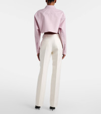 Innovation is at the heart of Balenciaga, which proudly presents its modern interpretation of fashion in every piece. Italian-crafted from wool and silk, these pants are shaped into a pleated slim-leg silhouette. Product Details - Material: 80% wool, 20% silk - Care instructions: dry clean - Made in Italy - Color: white - Designer color name: Ivory - Lining: 100% cupro - Pocket lining: 100% cotton - Belt loops - Pockets: slant pockets, back pockets - Closure: zipper fly, button fastening - Item number: P01177094 Size & Fit - True to size - Non-stretchy fabric - Slim-leg - Sits low on the hips - The model seen in the picture is 178cm-5'10" and wearing a size FR 34