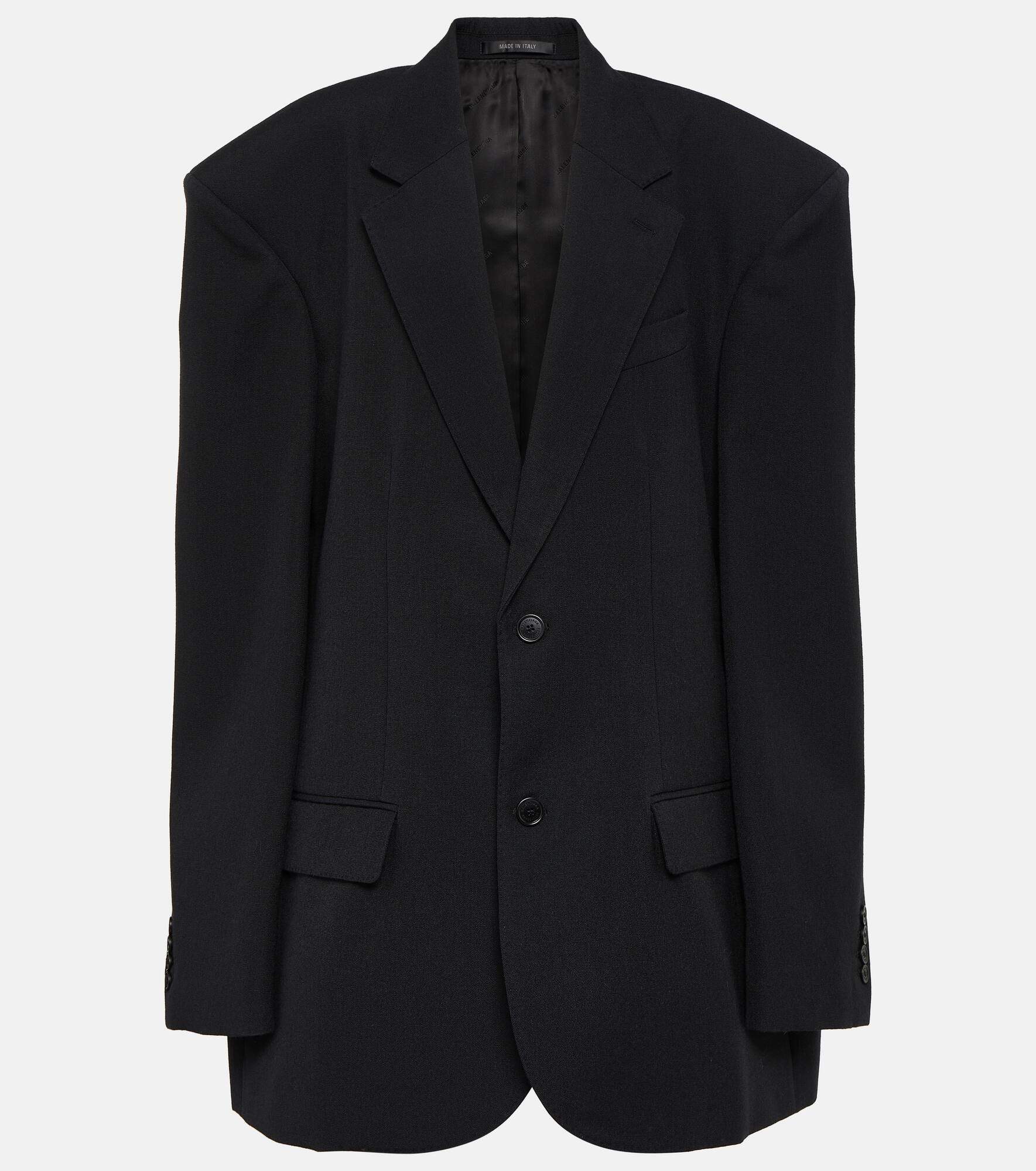This black Balenciaga blazer is a timeless outwear piece to add to your collection. Made from pure wool, the design comes in a classic single-breasted silhouette. Product Details - Material: 100% wool - Care instructions: dry clean - Made in Italy - Lining: 100% cupro - Pocket lining: 100% cotton - Closure: buttoned front - Pockets: flap pockets - Buttoned cuffs - Item number: P00867200 Size & Fit - Fits large to size - we recommend trying one size smaller - Designed for an extremely oversized fit - Oversized shoulders - Shoulder pad inserts - Mid-weight material - Falls below the hip - The model seen in the picture is 178cm-5'10" and wearing a size XXS