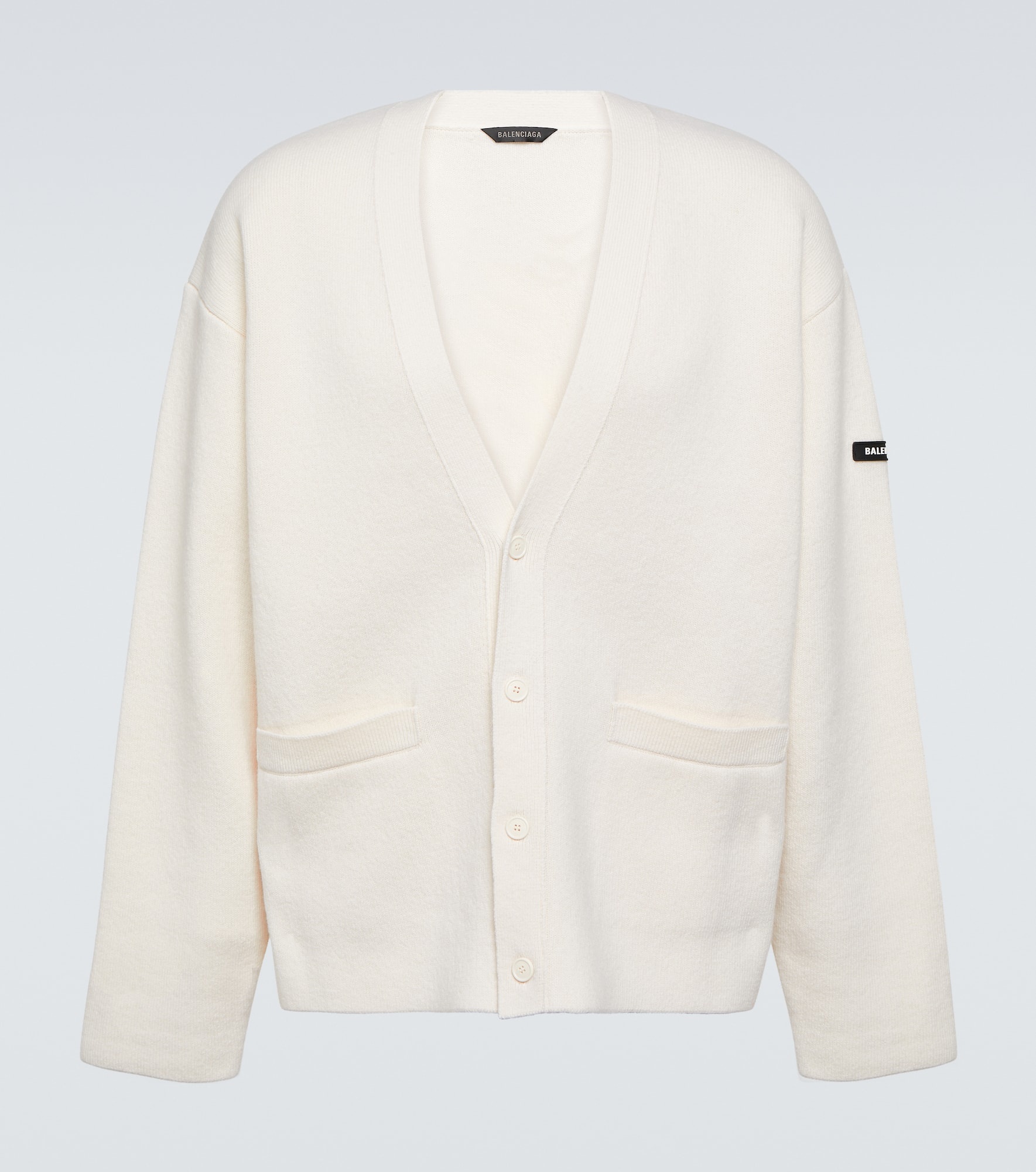 Innovation is at the heart of Balenciaga, which proudly presents its modern interpretation of fashion in every piece. Made from a warm wool-blend, this cardigan has a long-sleeved design. Product Details - Material: 97% wool, 2% polyamide, 1% elastane - Care instructions: dry clean - Made in Italy - Designer color name: White - Closure: buttoned front - Pockets: welt pockets - Item number: P00859644 Size & Fit - True to size - Dropped shoulders - Oversized - Mid-weight material - Falls below the hip - The model in the picture is 185cm-6'1" and wearing a size 3