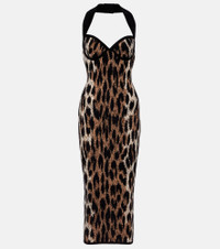 halterneck leopard-print midi dress