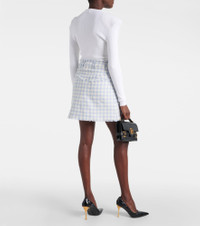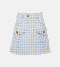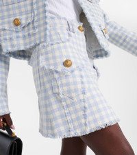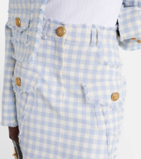Button-embellished frayed gingham cotton-blend tweed mini skirt