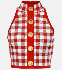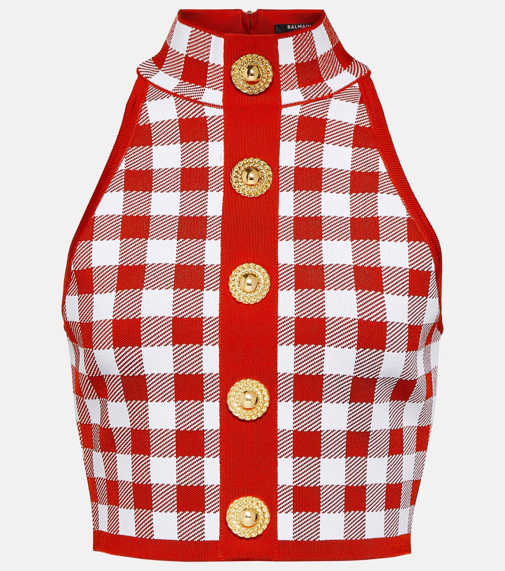 Product Details - Material: 90% viscose, 10% polyamide - Care instructions: hand wash - Made in France - Designer color name: Rouge/Blanc - Closure: zipped back - Item number: P00891203 Size & Fit - True to size - Fitted - Stretchy fabric - Cropped - The model seen in the picture is 178cm-5'10" and wearing a size FR 36