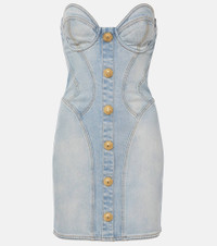 Product Details - Material: 98% cotton, 2% elastane - Care instructions: dry clean - Made in Italy - Designer color name: Bleu Jean Clair - Lining: 65% polyester, 35% cotton - Closure: zipped back - Item number: P01008022 Size & Fit - True to size - Low back - Strapless - Fitted - Non-stretchy fabric - The model seen in the picture is 178cm-5'10" and wearing a size FR 34