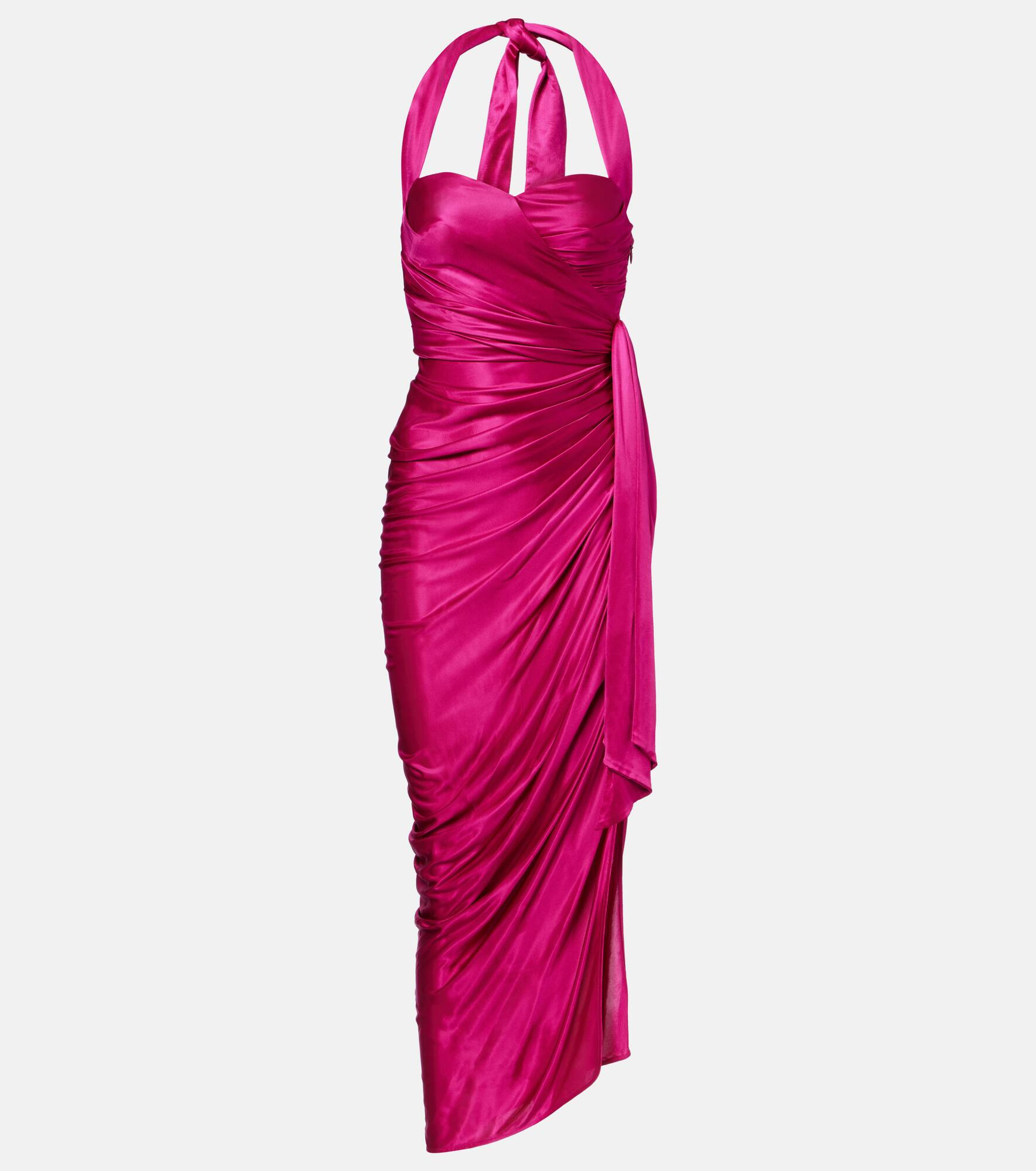 Draped halterneck satin midi dress