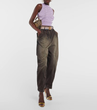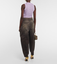 Refresh your off-duty edit with these wide jeans with tapered legs from Balmain. The high-rise pair is made from distressed-detailed denim and has signature gold-toned hardware for a recognizable finish. Product Details - Made in Italy - Care instructions: machine wash at 30 degrees - Closure: zipper fly, button fastening - Pockets: side slit pockets, back pockets - Material: 98% cotton, 2% elastane - Item number: P00796365 Size & Fit - True to size - Mid-weight material - Non-stretchy fabric - Tapered leg - High-rise - The model seen in the picture is 178cm-5'10" and wearing a size FR 36