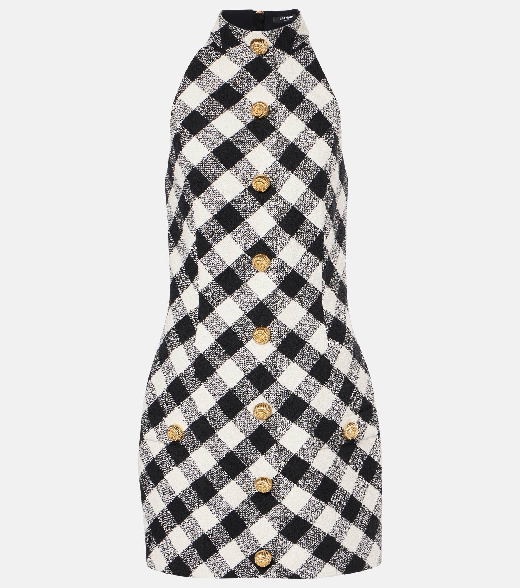 Halterneck cotton-blend tweed minidress