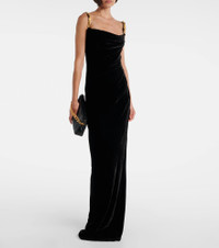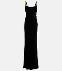 Olivier Rousteing breathes new life into Balmain, respecting the house’s couture heritage with modern relevance. This maxi dress is crafted from stretch jersey and features a flattering, fitted silhouette. Product Details - Material: 82% viscose, 18% silk - Care instructions: dry clean - Made in India - Designer color name: Noir/Or - Item color: black - Lining: 96% silk, 4% elastane - Details: 50% acrylic, 50% zamak - Item number: P01070127 Size & Fit - True to size - Cinched waist - Non-stretchy fabric - slit length 94,0cm-37" - The model seen in the picture is 178cm-5'10" and wearing a size FR 34