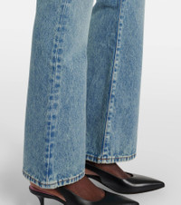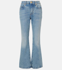 Product Details - Material: 100% cotton - Care instructions: specialist clean - Made in Romania - Designer color name: Bleu Jean - Closure: zipper fly, button fastening - Pockets: side slit pockets, back pockets - Item number: P01008020 Size & Fit - Fits small to size - we recommend trying one size larger - Non-stretchy fabric - Slim-leg with a flared hem - Mid-rise - The model seen in the picture is 178cm-5'10" and wearing a size FR 36