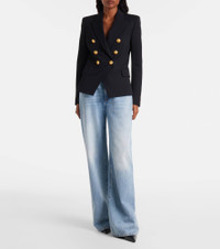 Curate the ultimate denim collection with reliable styles, like these jeans from Balmain. The design features a mid-rise waist and wide legs with fading throughout. Product Details - Material: 100% cotton - Care instructions: machine wash at 30 degrees - Made in Romania - Designer color name: Blue Jean Delave - Item color: blue - Hardware color: gold - Pocket lining: 65% polyester, 35% cotton - Pockets: five pockets - Closure: zip and button fastening - Belt loops - Item number: P01092824 Size & Fit - Fits small to size - we recommend trying one size larger - Non-stretchy fabric - Wide-leg - Mid-rise - The model seen in the picture is 178cm-5'10" and wearing a size FR 36