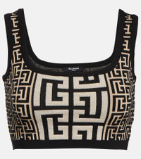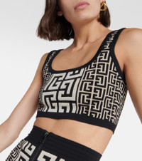 This wool-blend crop top from Balmain reworks athleisure for everyday wear. It's finished with the house's jacquard monogram motif – a pattern inspired by the French Renaissance gardens beloved by Pierre Balmain. Product Details - Material: 28% viscose, 2% elastane, 19% polyamide, 51% wool - Care instructions: specialist clean - Made in Italy - Designer color name: Gfe Ivoire/Noir - Item number: P00820785 Size & Fit - True to size - Fitted - Mid-weight material - Stretchy fabric - Cropped - The model seen in the picture is 178cm-5'10" and wearing a size FR 36