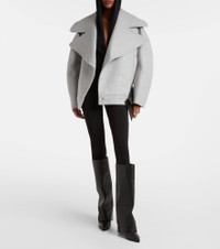 Olivier Rousteing breathes new life into Balmain, respecting the house’s couture heritage with modern relevance. This peacoat is cut from wool and cashmere into an oversized silhouette with a double-breasted front and dropped shoulders. Product Details - Material: 90% wool, 10% cashmere - Care instructions: dry clean - Made in Italy - Designer color name: Gris Clair - Item color: gray - Lining: 52% viscose, 48% cotton - Pocket lining: 52% viscose, 48% cotton - Sleeve lining: 52% viscose, 48% cotton - Pockets: side slit pockets - Closure: snap-buttoned front - Item number: P01092835 Size & Fit - True to size - Dropped shoulders - Oversized - Non-stretchy fabric - Falls below the hip - The model seen in the picture is 178cm-5'10" and wearing a size FR 36