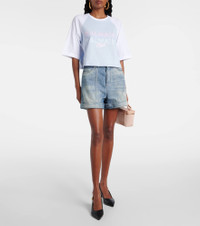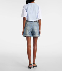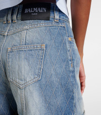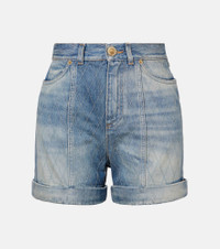Olivier Rousteing breathes new life into Balmain, respecting the house’s couture heritage with modern relevance. These denim shorts feature a charming all-over pattern and cuffed hems, creating a polished yet effortless silhouette. Product Details - Material: 100% cotton - Care instructions: specialist clean - Made in Italy - Designer color name: Blue Jean Clair - Item color: blue - Pocket lining: 65% polyester, 35% cotton - Hardware color: gold - Pockets: slant pockets, patch pockets - Hem: cuffed - Belt loops - Item number: P01070103 Size & Fit - True to size - Non-stretchy fabric - Straight leg - High-rise - The model seen in the picture is 178cm-5'10" and wearing a size FR 34